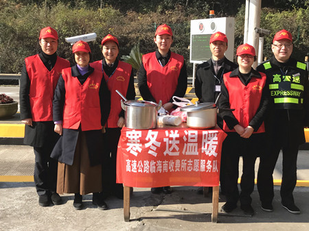 1月12日上午,臨海南收費所的收費員們走出崗亭,開展了一場“寒冬送溫暖”活動。