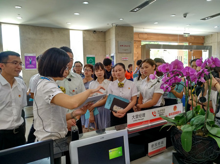 圖為參觀浙江泰隆商業銀行“小微金融服務”團員先鋒崗