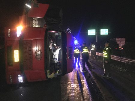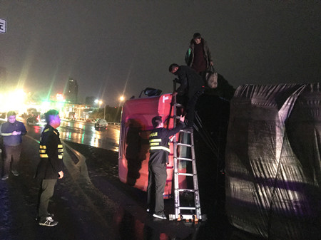 1月19日晚,一輛半掛車在溫嶺西收費站下高速時,因故在內(nèi)廣場側(cè)翻。溫嶺西收費所、施救中心、高速交警、維養(yǎng)中心人員協(xié)同作戰(zhàn),將側(cè)翻車輛吊起,有效降低了事故對收費站通行造成的影響。