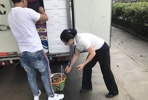 圖為工作人員幫司機撿李子 一個個李子雖小,卻很調皮。有的滾到了欄桿前,有的溜到了車道的狹縫里,有的甚至逃到了車底下,收費員鄭維見狀,立馬彎腰撿李子,又迅速跑到欄桿前,很靈活地抓起了好幾個李子。狹縫里都是沖洗車道留下來的臟水,鄭維又毫不猶豫地將手伸向臟水里撿李子,再拿到水龍頭前沖洗一番后放回到司機的籃子里。一來一回好幾趟,原本平日里就怕熱的鄭維早已滿身大汗,此時她卻全然不顧。
