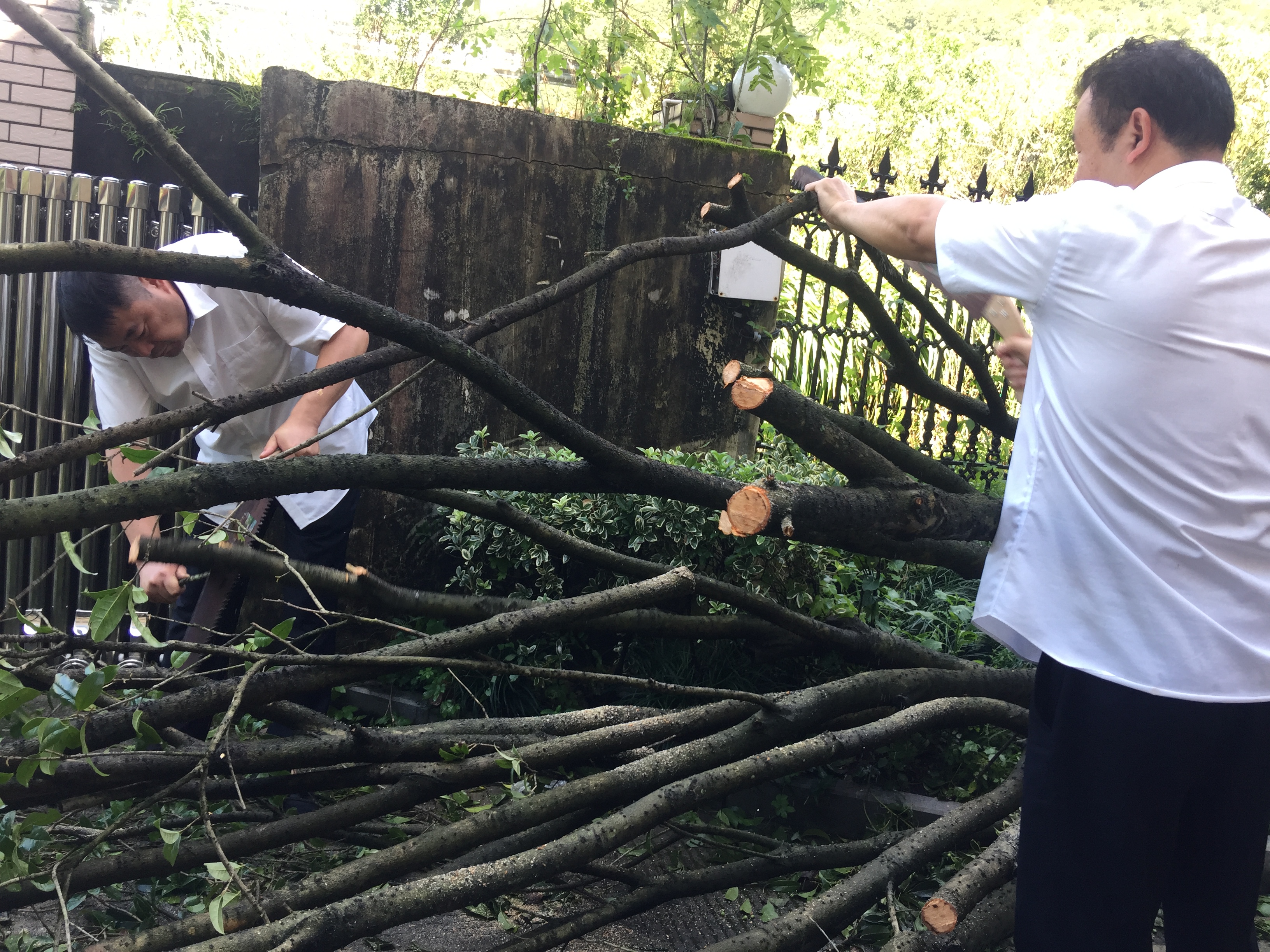 圖為臺風(fēng)過后隧道所人員給倒伏的樹木截枝