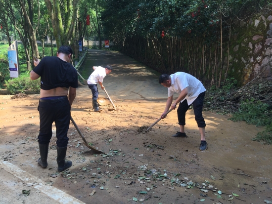 臺風(fēng)利奇馬”肆虐而過,雖然黃土嶺隧道所提前做好各項(xiàng)防臺措施,但是干凈整潔的管理所在這場天災(zāi)中還是受到了破壞,樹木倒折、落葉、樹枝滿地淤泥坑洼,現(xiàn)場一片狼藉。8月12日上午剛剛恢復(fù)正常供水的黃土嶺隧道所全體人員立馬投入到重建家園中,打掃衛(wèi)生,原地種回倒伏的樹木,清理淤泥……徹底消除臺風(fēng)過后留下的殘敗痕跡。