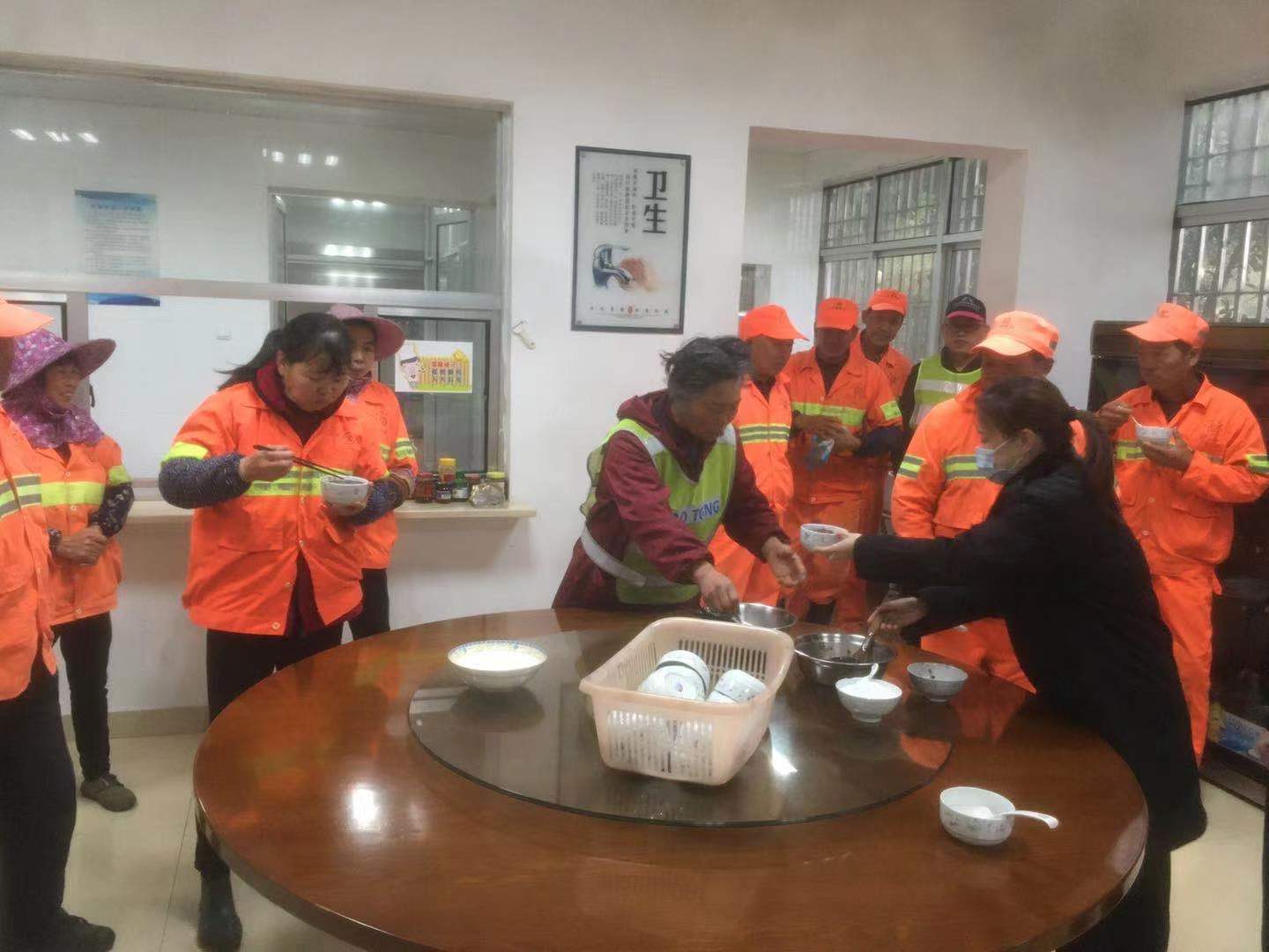 (圖為隧道所邀請(qǐng)養(yǎng)護(hù)人員到所食堂喝粥)
