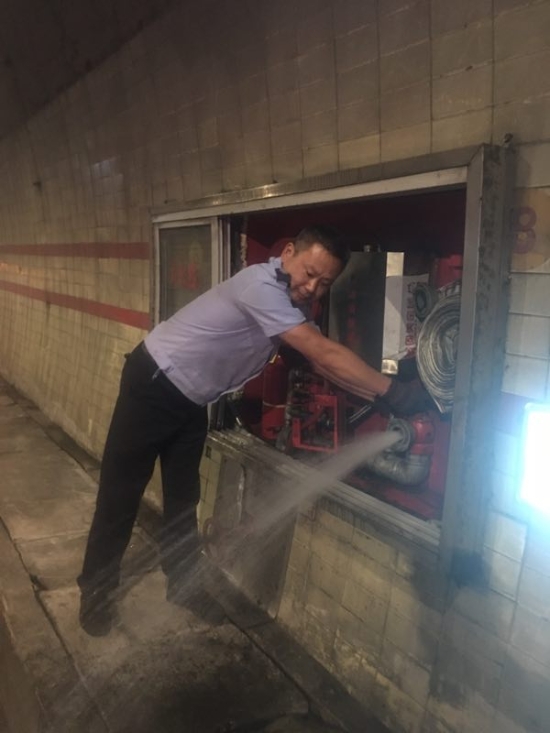 圖為張貼火災報警提示標語 此次隧道清洗工作主要針對隧道內的機電設施維修與保養,清潔監控和照明燈,修復故障攝像機;檢修消防設施,如火災報警采用點火測試、手動報警、緊急廣播和電話測試,以及檢查消防箱;隧道內指示標記檢查,如人通、汽通檢查保養,隧道風機檢測,貼安全提示標志,修復提示燈等。 隊員們放棄休假,加班加點,借著隧道清洗一類施工的有利條件,把隧道內需報修的各種設備進行維修和保養,保障了隧道內機電、消防設施的正常運行,排除安全隱患,為即將到來的中秋小長假提供明亮、安全的隧道行車環境。 陳智慧