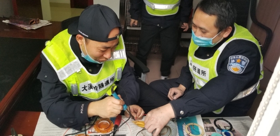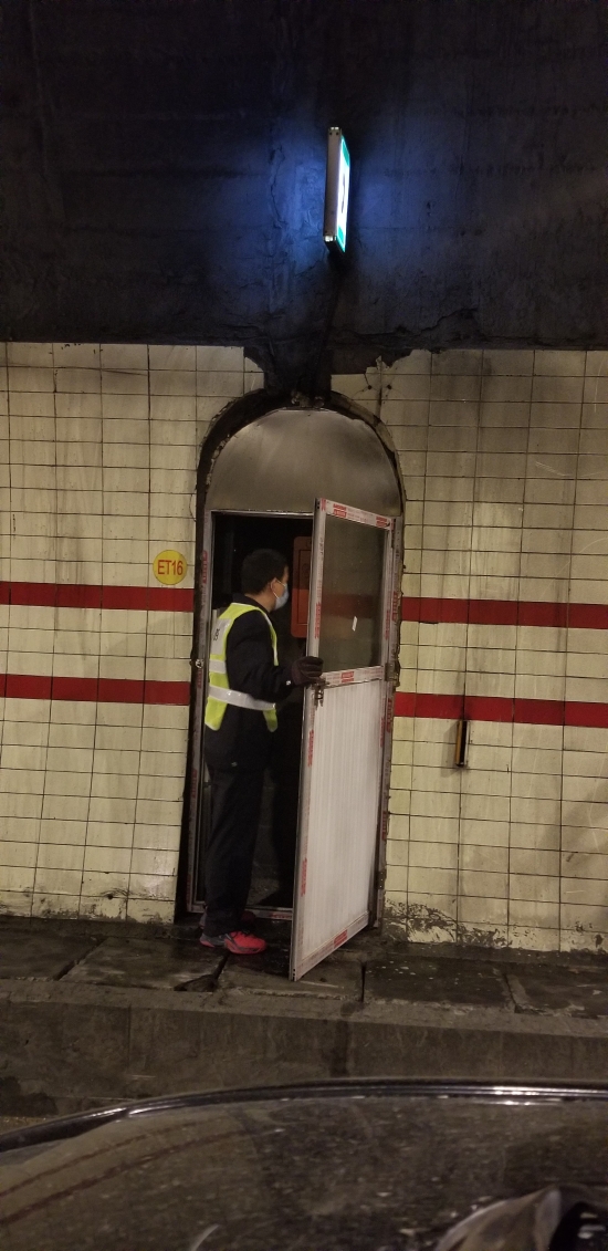 圖為工作人員在檢修緊急電話(huà) 此次隧道清洗,隧道所員工加班加點(diǎn),檢查隧道內(nèi)消防箱、檢修隧道風(fēng)機(jī)和加強(qiáng)燈回路、修理故障的語(yǔ)音提示,對(duì)配電房機(jī)電設(shè)備進(jìn)行除塵保養(yǎng),還檢測(cè)了火災(zāi)報(bào)警、緊急廣播、緊急電話(huà)等系統(tǒng)。
