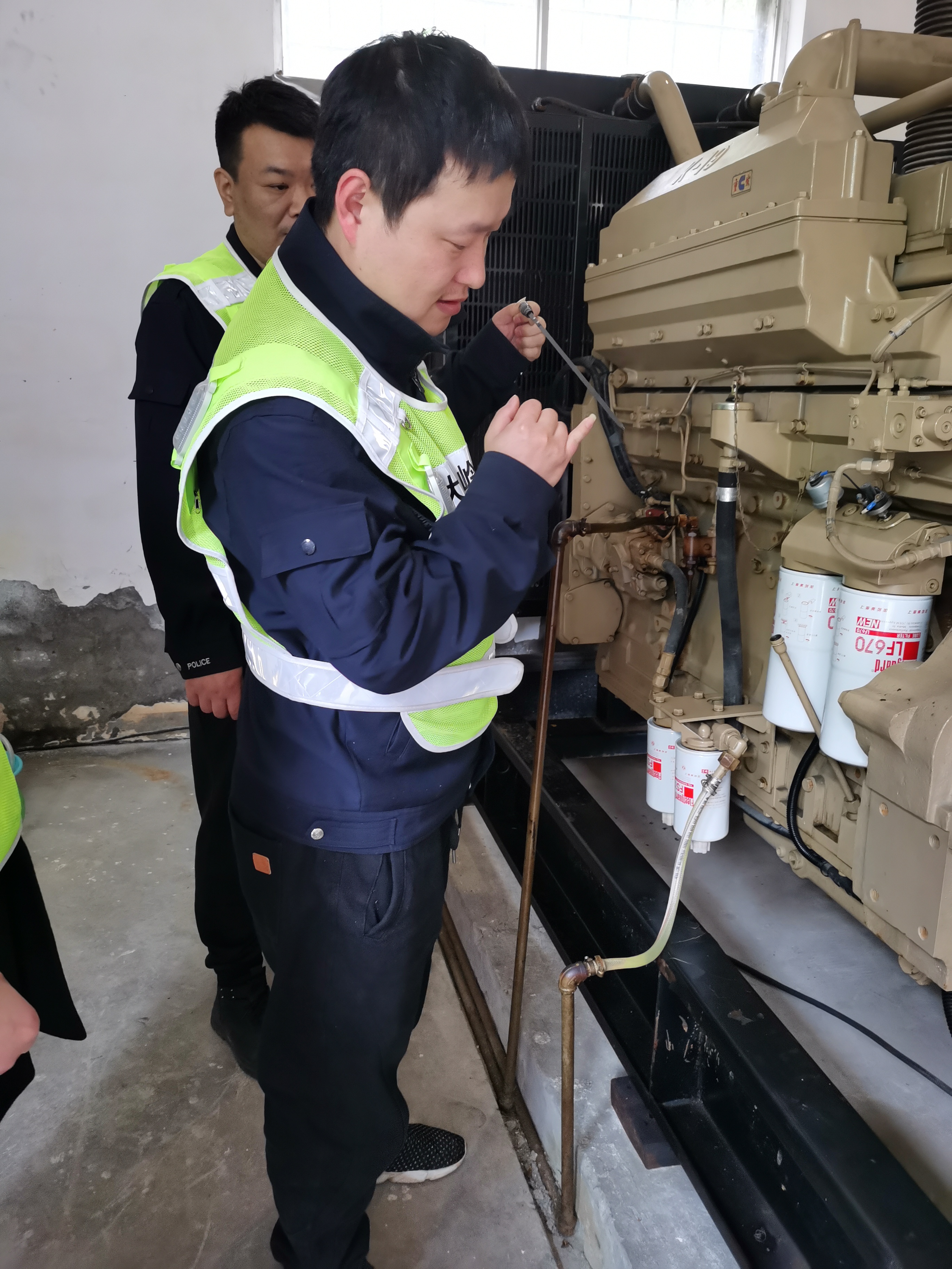 圖為檢查配電房設備 近期,由于高速公路免費通行,大溪嶺隧道車流量日漸增大,日均約3.5萬輛,隧道行車安全不容小覷。為切實保障“五一”大流量隧道安全,檢查組對隧道的高邊坡、排水邊溝、隧道內壁有無滲水等進行實地勘察;對發電機房、隧道設備設施、消防器材、配電房的機電設施和消防設備、應急照明等進行了全面細致的檢查,并對員工食堂的食品安全、衛生情況進行檢查,即時整改檢查中發現的安全隱患問題。隧道所還要求執勤隊要加強隧道巡查次數,巡檢時注意安全,做好應急處理措施。