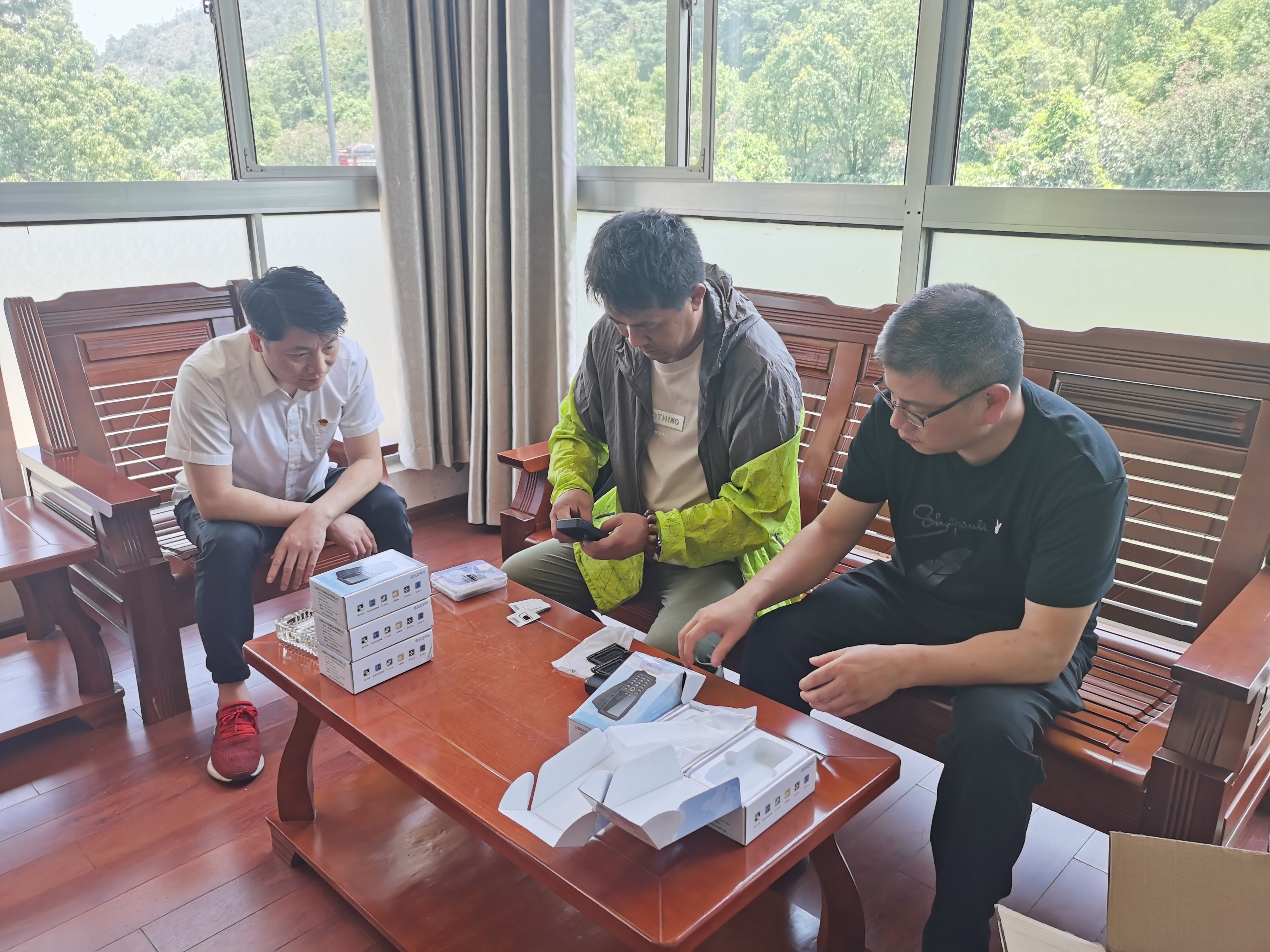 圖為廠家人員前來(lái)安裝對(duì)講機(jī) 當(dāng)日下午,為了讓執(zhí)勤隊(duì)員快速熟悉手機(jī)對(duì)講機(jī)的使用和管理,切實(shí)發(fā)揮對(duì)講機(jī)在實(shí)際工作中的作用,兩隧道所立即組織當(dāng)班隊(duì)員集中培訓(xùn)。大家認(rèn)真地學(xué)習(xí)對(duì)講機(jī)的操作規(guī)范,相互研討對(duì)講機(jī)的特點(diǎn),一邊操作示范,一邊了解屬性,以便更快掌握。