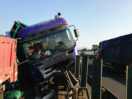 現場,事故車輛占據整個超車道和半個主車道,因此造成后方嚴重堵車。施救中心在接到報警后迅速出動,不僅配合警車在現場預警,而且想辦法盡快將事故車輛拖離車道,以免造成二次事故。隨后,養護部門到達現場清理。經過5個多小時奮戰,40多人的合力處理下,道路終于恢復了暢通。 本次貨車側翻事故給高速路產造成了巨大損失,除了中央護欄損壞,地上的漏油和玻璃碎片殘渣給路產定損和取證工作帶來了巨大的難度。施救中心人員為了第一時間保證證據,天黑一次,天亮一次,踩著滿地的油污和玻璃瓶渣分兩次取證,努力確保勘察定損的客觀性和真實性。 王凱