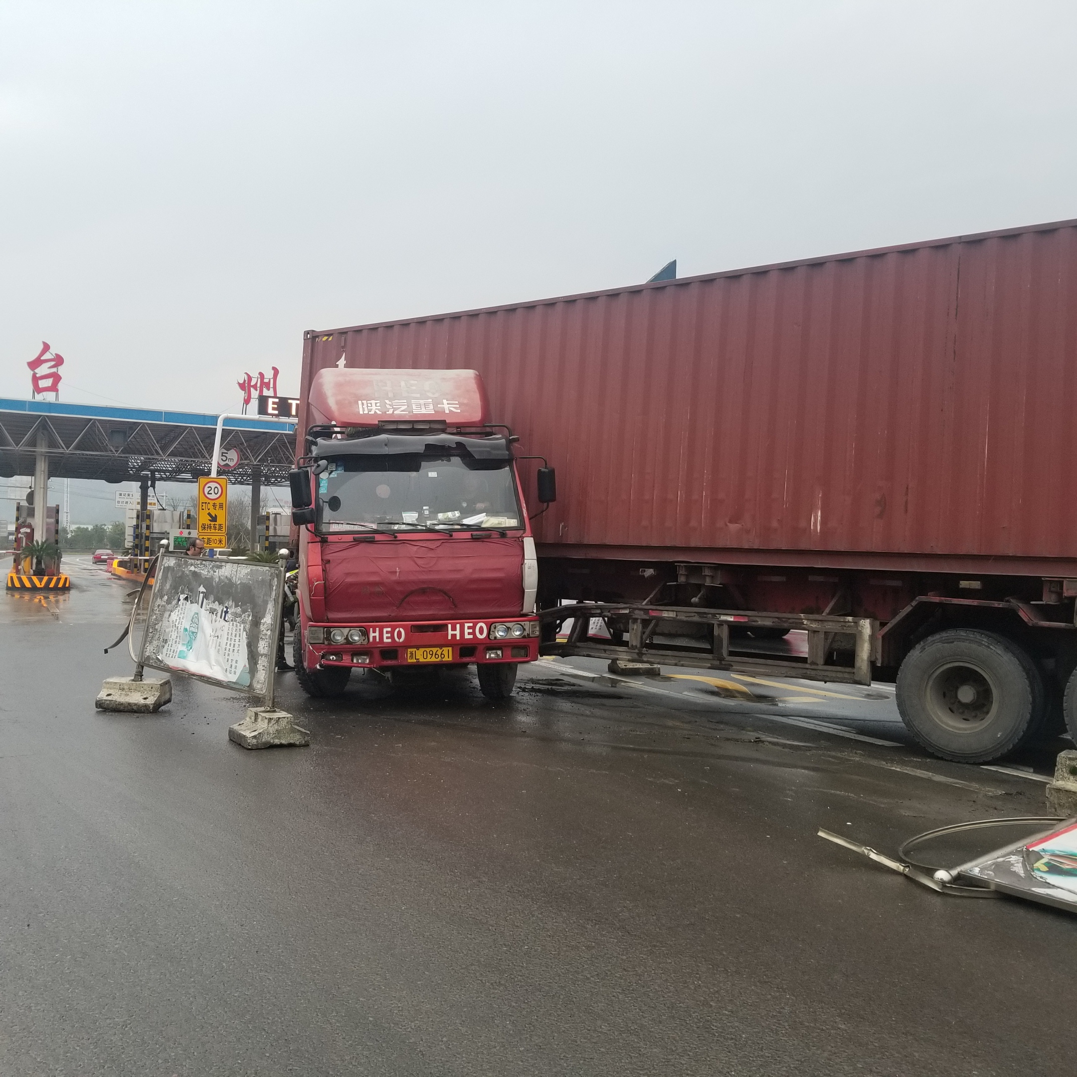 圖為大貨車碰撞隔離帶 施救中心和通遠公司是這一片隔離帶損壞的見證者。早在2018年12月20日,一輛集裝箱大貨車由于打方向過急,就曾在此地來了個“龍回頭”,造成隔離帶的損壞。當時施救中心和通遠公司都參與了救援及理賠,費了很大的勁才把這輛集裝箱大貨車引回道路。在后續(xù)把隔離帶恢復原位的過程中,由于隔離帶破損和水泥墩的沉重,不少人因此還受了傷。 此次,路橋通遠公司在接到消息之后,行動迅速,馬上組織人員趕到現場進行清除作業(yè)。在忙碌了半個上午之后,終于把損壞的廣告式隔離帶全部清除。