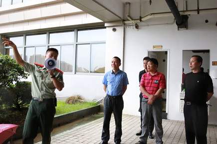 圖為公司總經(jīng)理張建平到現(xiàn)場(chǎng)觀摩演練、聽(tīng)專(zhuān)業(yè)安全消防員演練點(diǎn)評(píng)
