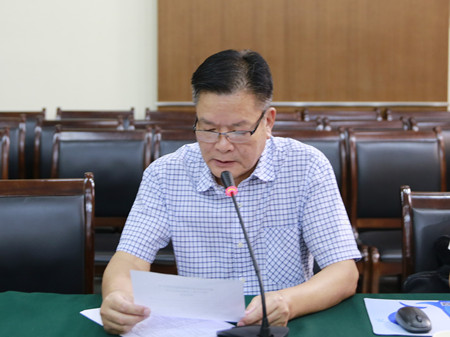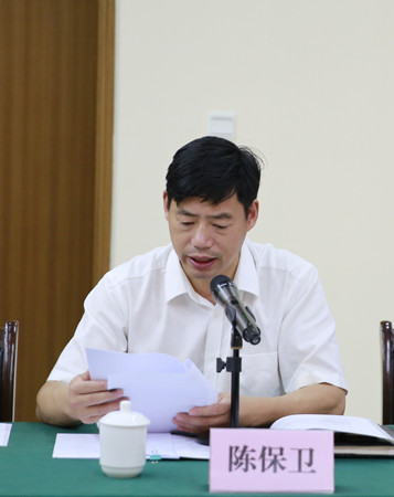 圖為公司副總經理陳保衛宣讀議案