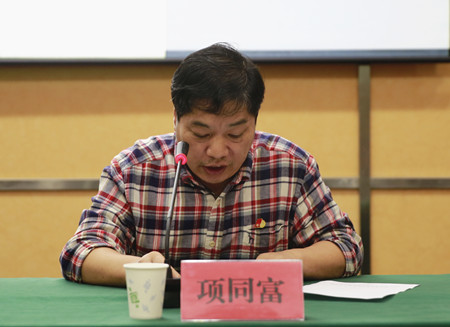圖為安全總監(jiān)項(xiàng)同富傳達(dá)市長張兵在安全生產(chǎn)委員會會議上的重要講話精神