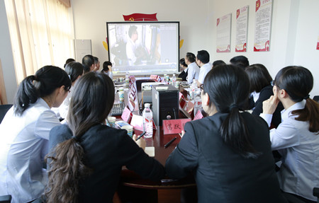 圖為觀看文明服務錄像
