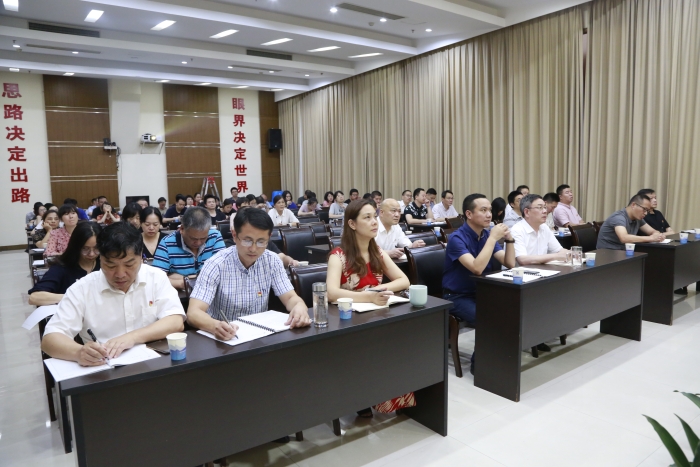 圖為參加學習的領導干部職工 片中輻射出的中國正能量感染了在場所有的觀看人員,大家深刻感受著創新、協調、綠色、開放、共享的新發展理念給中國帶來的巨大變化,對祖國的繁榮富強、和諧友愛充滿自豪感。并表示堅決維護以習近平總書記為核心的黨中央,砥礪奮進,貢獻個人力量。 陳林偉