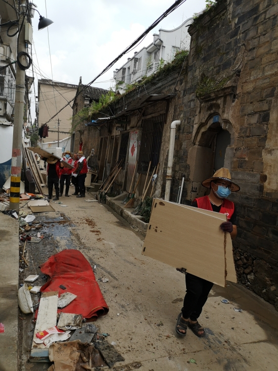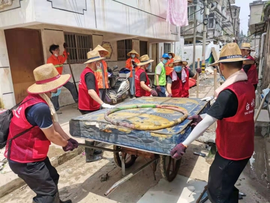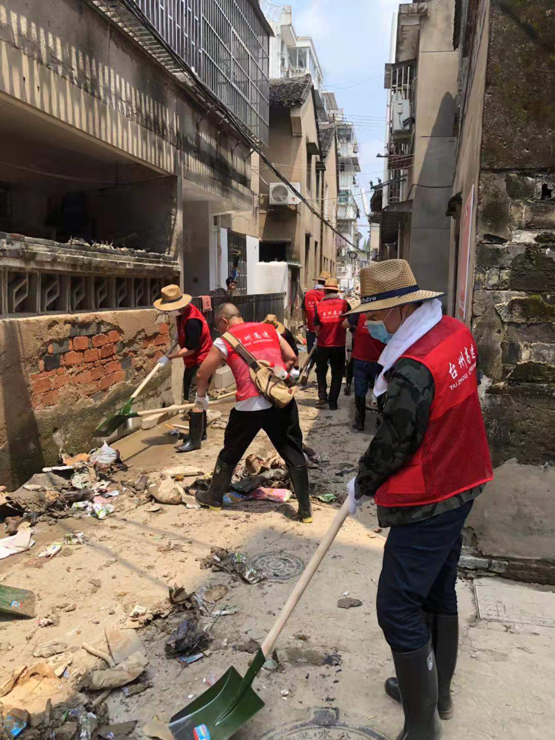 圖為臺(tái)州高速志愿者支援災(zāi)區(qū)重建現(xiàn)場(chǎng) 在臨海古城赤城路米篩巷,臺(tái)州高速集團(tuán)的志愿者們頂著毒辣的太陽(yáng),不怕臟不怕累,積極為災(zāi)后重建貢獻(xiàn)力量,清理路面淤泥、垃圾,保障路面清潔以及道路順暢。 真情傳遞溫暖 愛(ài)心匯聚力量, 面對(duì)災(zāi)后重建, 臺(tái)州高速集團(tuán)用實(shí)際行動(dòng), 彰顯鐵軍精神, 承擔(dān)社會(huì)責(zé)任, 展現(xiàn)使命擔(dān)當(dāng)。