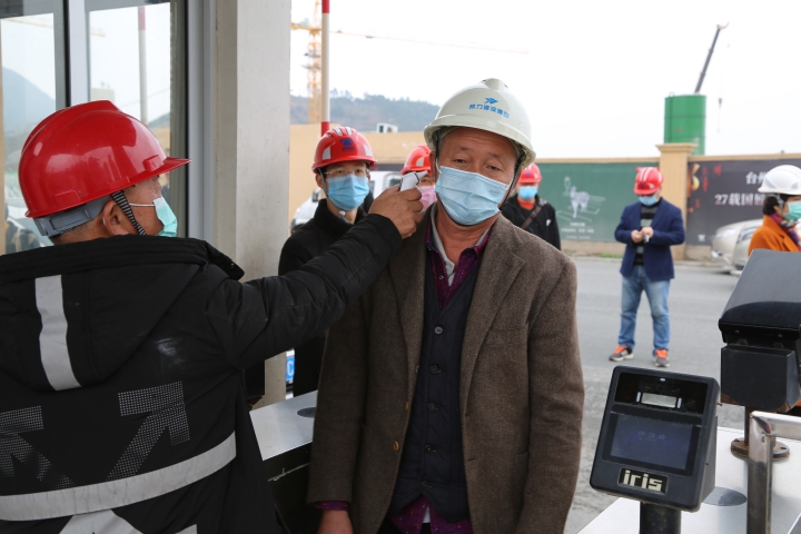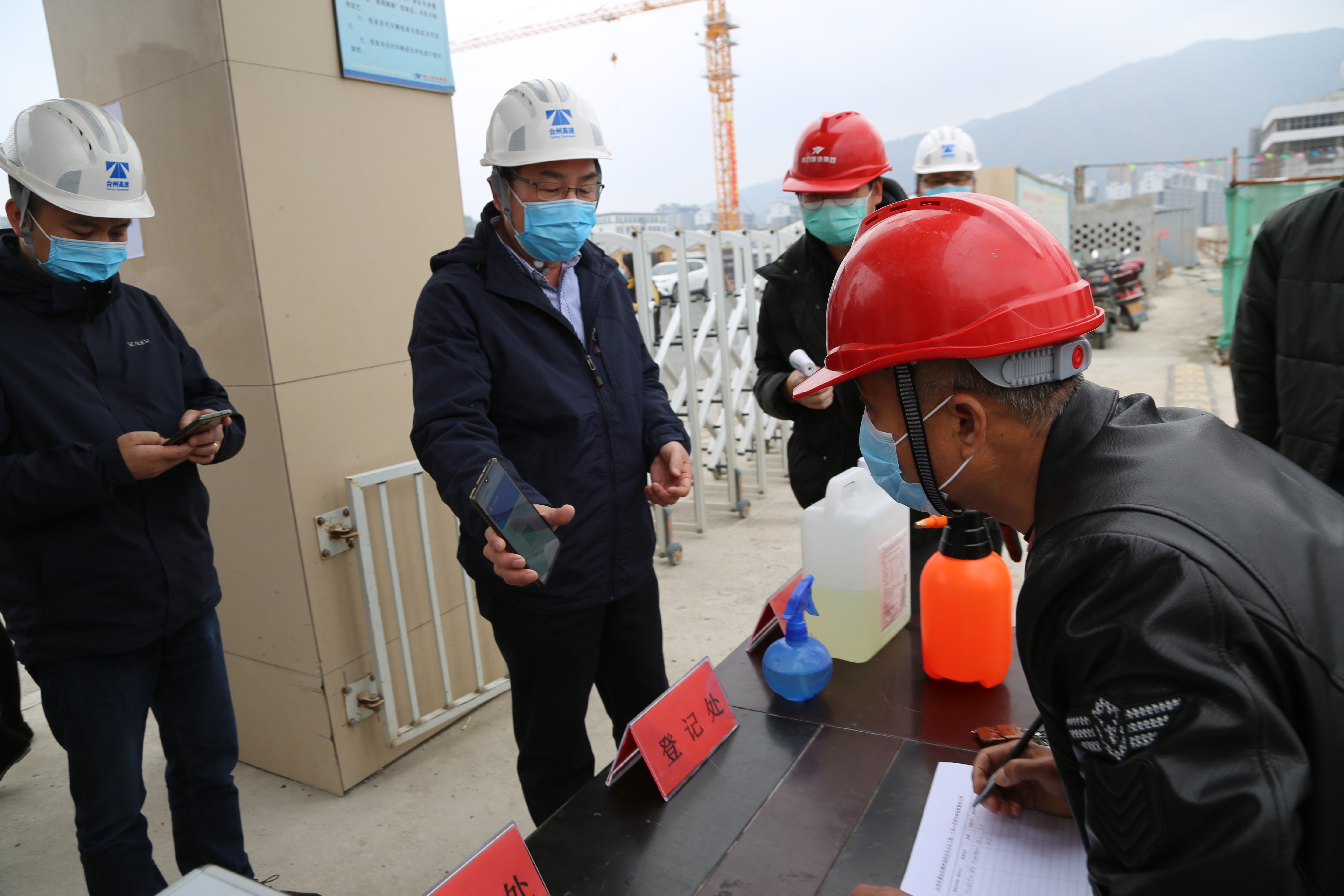 “這是我的綠碼。”臺(tái)州高速集團(tuán)黨委書記、董事長、總經(jīng)理陳文波主動(dòng)向黃巖玖璽逸墅項(xiàng)目施工工地的防疫人員出示自己的綠碼。經(jīng)過測體溫、登記、檢查綠碼、消毒等防疫流程,陳文波一行進(jìn)入施工工地。