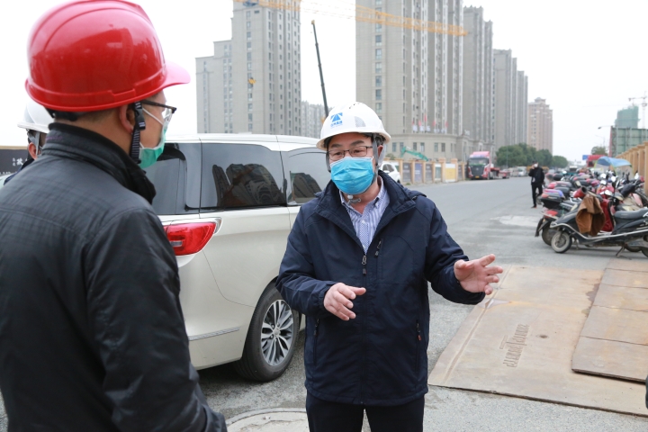 圖為陳文波向項(xiàng)目負(fù)責(zé)人了解防疫和復(fù)工情況以及提出相關(guān)要求