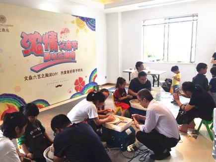 6月18日,恰逢父親節(jié)和周末,在文鼎苑銷(xiāo)售展廳內(nèi),人潮涌動(dòng),人氣高漲,許多家長(zhǎng)帶著小朋友紛紛前來(lái)參加仁和房產(chǎn)公司舉辦的“共度父親節(jié)文鼎六藝之陶泥DIY親子活動(dòng)”。