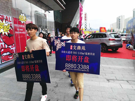 圖為文鼎苑銷(xiāo)售部人員在商場(chǎng)內(nèi)開(kāi)展宣傳活動(dòng)