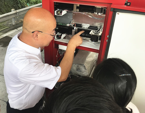 上圖為實踐培訓現場 此次安裝,臺州南和臨海南兩個收費所皆是初次接觸自動發卡機,對發卡機運作流程和使用操作都較為陌生,但兩所未雨綢繆,提前組織發卡機操作流程學習和培訓。其中臺州南收費所召集所有班組長及行政人員赴臺州收費所“取經”,虛心向他們學習發卡機卡票安裝和使用、常見故障排除和恢復方法。臺州收費所不僅向他們仔細傳授了卡機裝卡、裝票詳細步驟及技巧,還將他們近一年運行下來的一些排故經驗及特情處理毫無保留地進行分享,以幫助他們少走“彎路”,盡快上崗。臨海南收費所湯明漲,因為之前有使用過自動發卡機經驗,對卡機整套工作流程和使用操作都較為熟悉,就自告奮勇當起培訓師,帶領所內人員下到現場,親自演示發卡機操作步驟,詳細講解卡機內部各項功能鍵使用及說明,并一一解答大家提出的疑問。