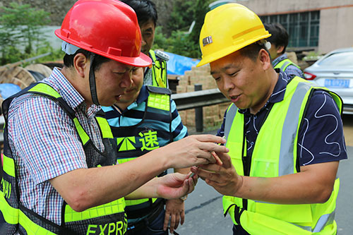 8月20日,已經(jīng)是三伏天的尾聲了,雖然經(jīng)過連續(xù)多個臺風(fēng)的洗禮,然而天氣依然炎熱。集團(tuán)總工程師江輝心系一線,在工程部負(fù)責(zé)人的陪同下,深入大溪嶺-湖霧嶺隧道機(jī)電改造項(xiàng)目工地現(xiàn)場,慰問正在高溫中奮戰(zhàn)的一線施工人員。