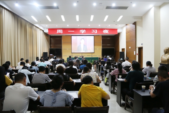 臺州高速集團周一學習夜觀看紀錄片《輝煌中國》 之第四集《綠色家園》 7月29日晚上,臺州高速集團周一學習夜觀看紀錄片《輝煌中國》之第四集《綠色家園》。集團安全總監(jiān)項同富主持活動,領導班子成員、大樓全體干部職工參加學習。