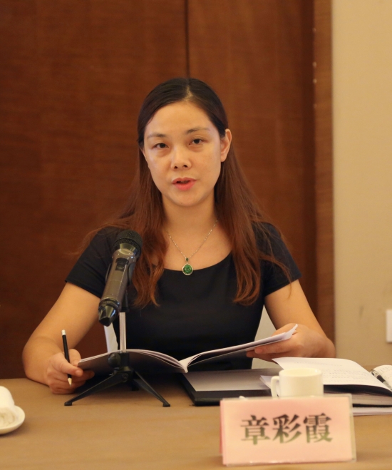 圖為公司財務(wù)總監(jiān)章彩霞宣讀財務(wù)報告