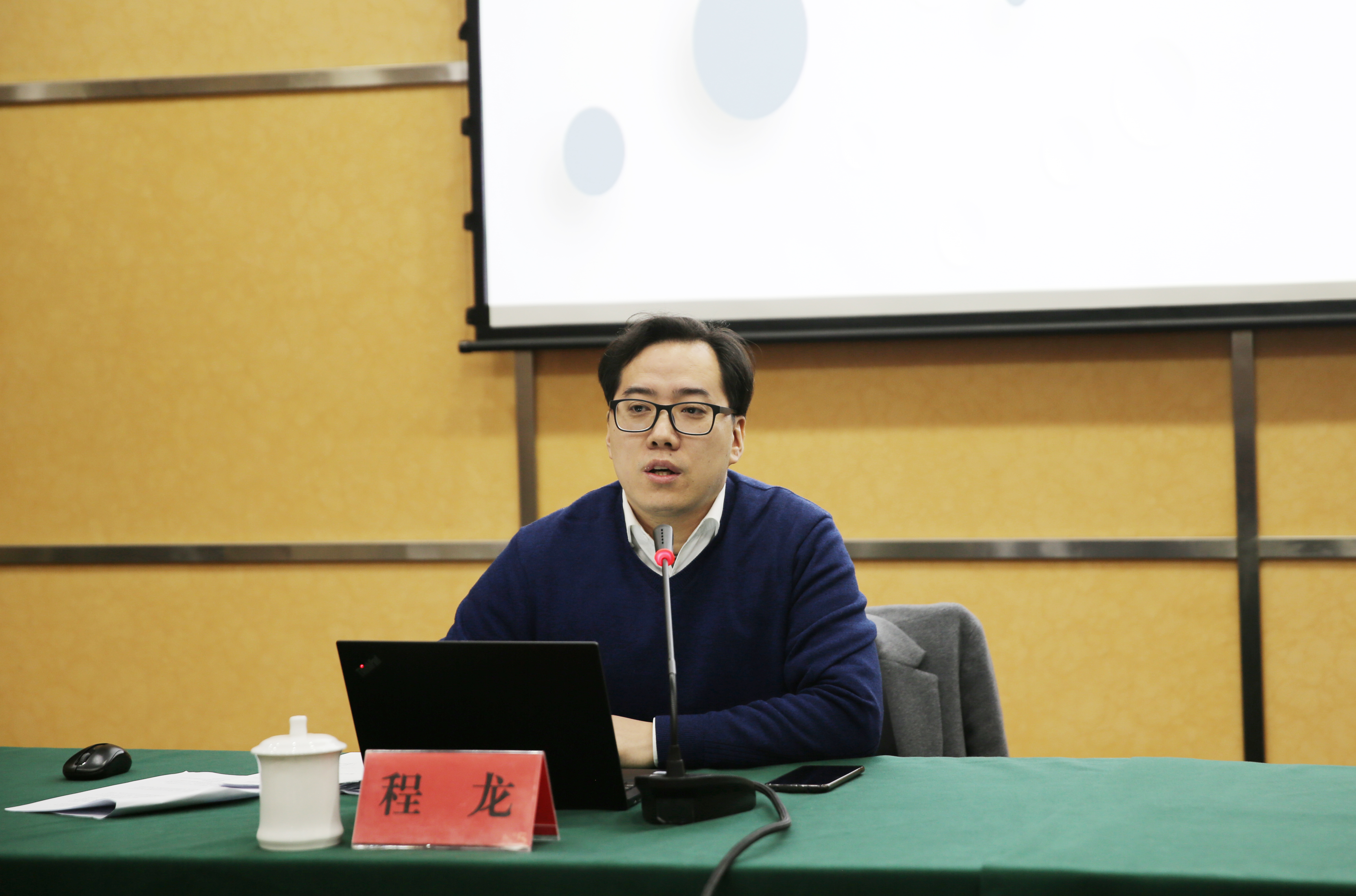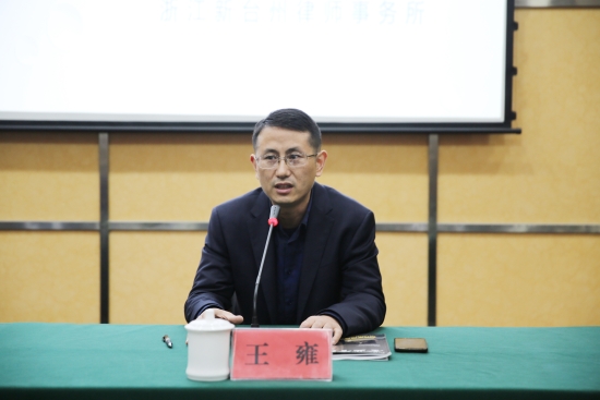 圖為王雍主持培訓會 本次培訓會邀請了浙江新臺州律師事務所律師程龍為大家授課。程龍結合實際案例對最新的九民紀要進行解讀,并講解了有關集團提供擔保、股東代表訴訟、表決權能否受限、借款合同等相關法律知識,還對可能存在的的風險,及可能引發的民事責任、行政責任和刑事責任等進行相應的介紹。