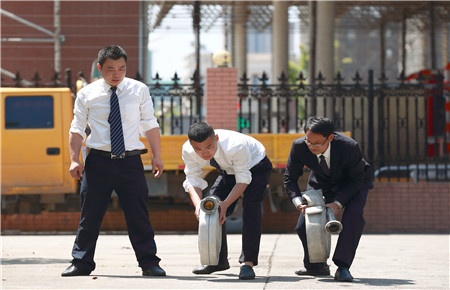 該演練模擬了生活樓發生火災,員工一發現火情就立即撥打了報警電話。參加演練人員聽到警報聲后,迅速拿起打濕的毛巾捂住口鼻,手扶墻體或樓梯扶手,俯身低姿從三樓或二樓,向安全通道有序撤離。全體人員不一會就疏散到了安全地帶,同時連接好消防水帶,迅速跑至火源附近,對準火源有效滅火。