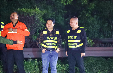 圖為工程養護部經理何翔堅守在夜間封道施工現場