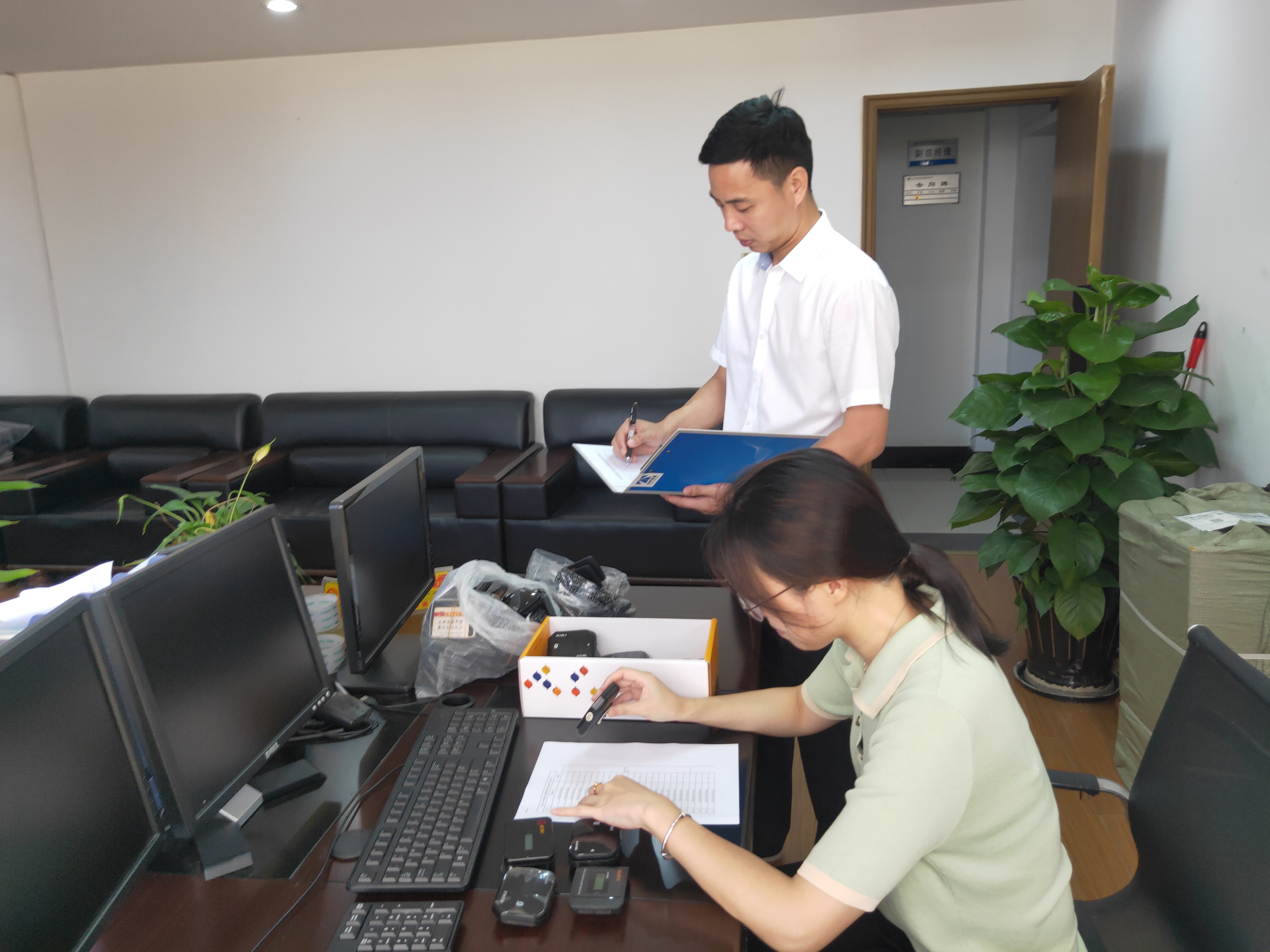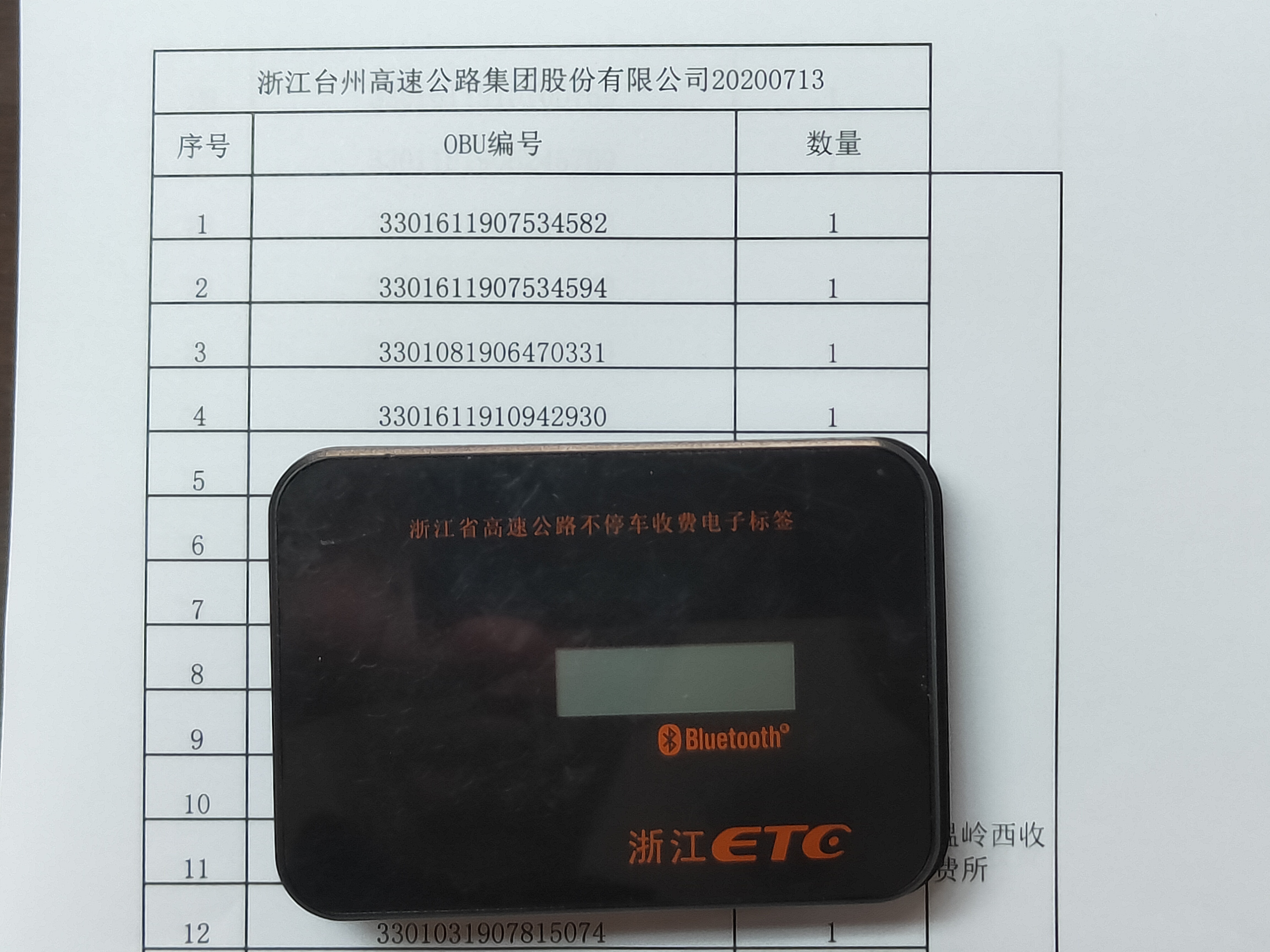 圖為統計好的表格和故障OBU樣品 7月8日,浙江省高速公路ETC服務中心要求各高速公路公司統一清點故障OBU數量,做好相關回收統計工作。征費管理部立即安排人員清查故障OBU情況,共收到收費所故障OBU設備67個,并對每個上交的OBU進行編號登記核對,第一時間完成了任務。 7月13日,征費管理部人員對故障OBU核對、整理、裝箱,聯系快遞公司,將這批故障OBU寄往省ETC服務中心,至此該部門順利完成移交工作。 葉茂