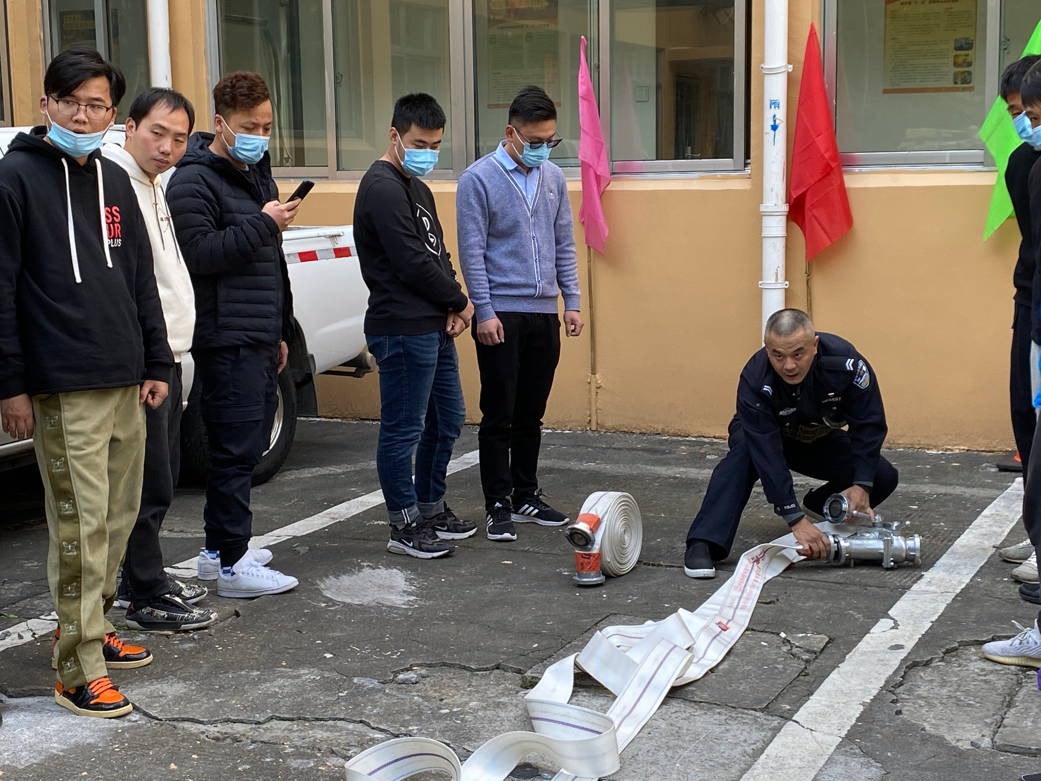 “兩盤水帶連接技巧,解決水帶打卷、水帶不直等一系列“小毛病……” 廣場上,各帶訓(xùn)隊長正在示范滅火器、兩帶聯(lián)接、故障車后方小紅帽擺放的正確使用方法。在火災(zāi)發(fā)生初期,能做到迅速反應(yīng),啟動消防應(yīng)急預(yù)案,及時疏散轉(zhuǎn)移司乘人員,在保證自身安全的同時,做到“小火會用滅火器,大火會用消防栓”。帶訓(xùn)班長邊講解,邊進行示范,確保每名學(xué)員正確掌握要領(lǐng),動作規(guī)范。學(xué)員們遇到不易理解的地方時,主動提問,技術(shù)人員耐心講解,現(xiàn)場時刻充滿著積極向上、你問我答的良好學(xué)習(xí)氛圍。