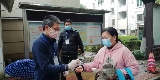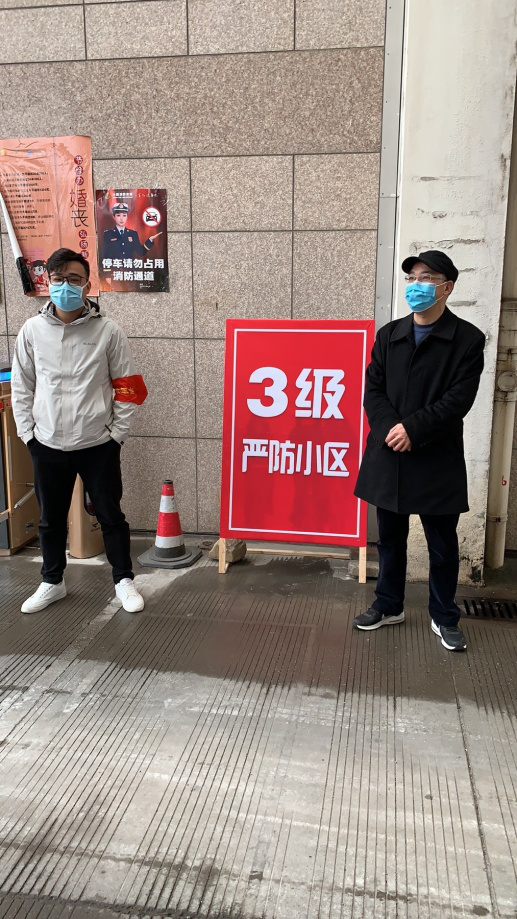 黨員包啟曉,在星洲小區(qū)援助社區(qū)逐家逐戶發(fā)放通行卡,并多次參與社區(qū)卡點測溫志愿服務(wù)。