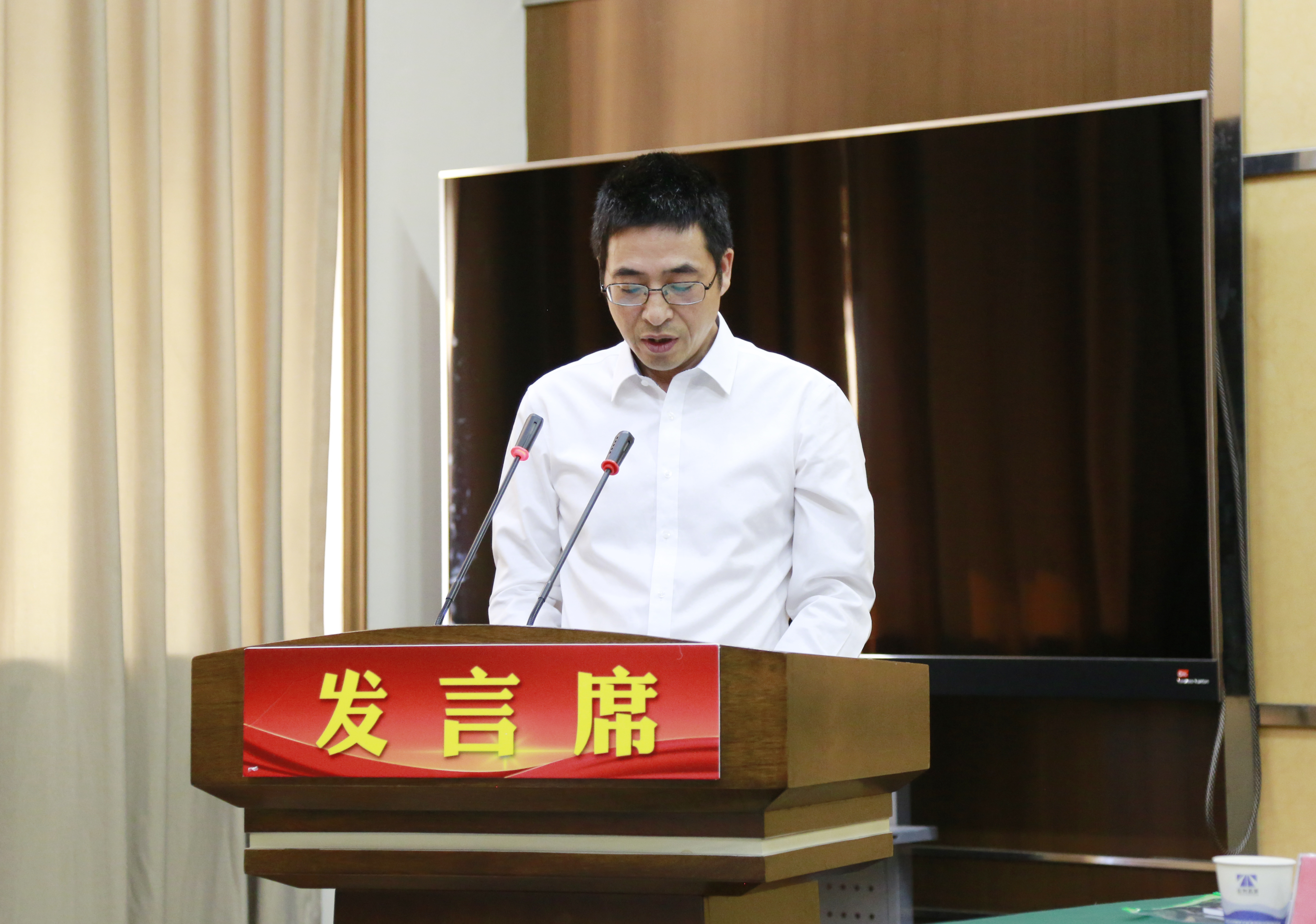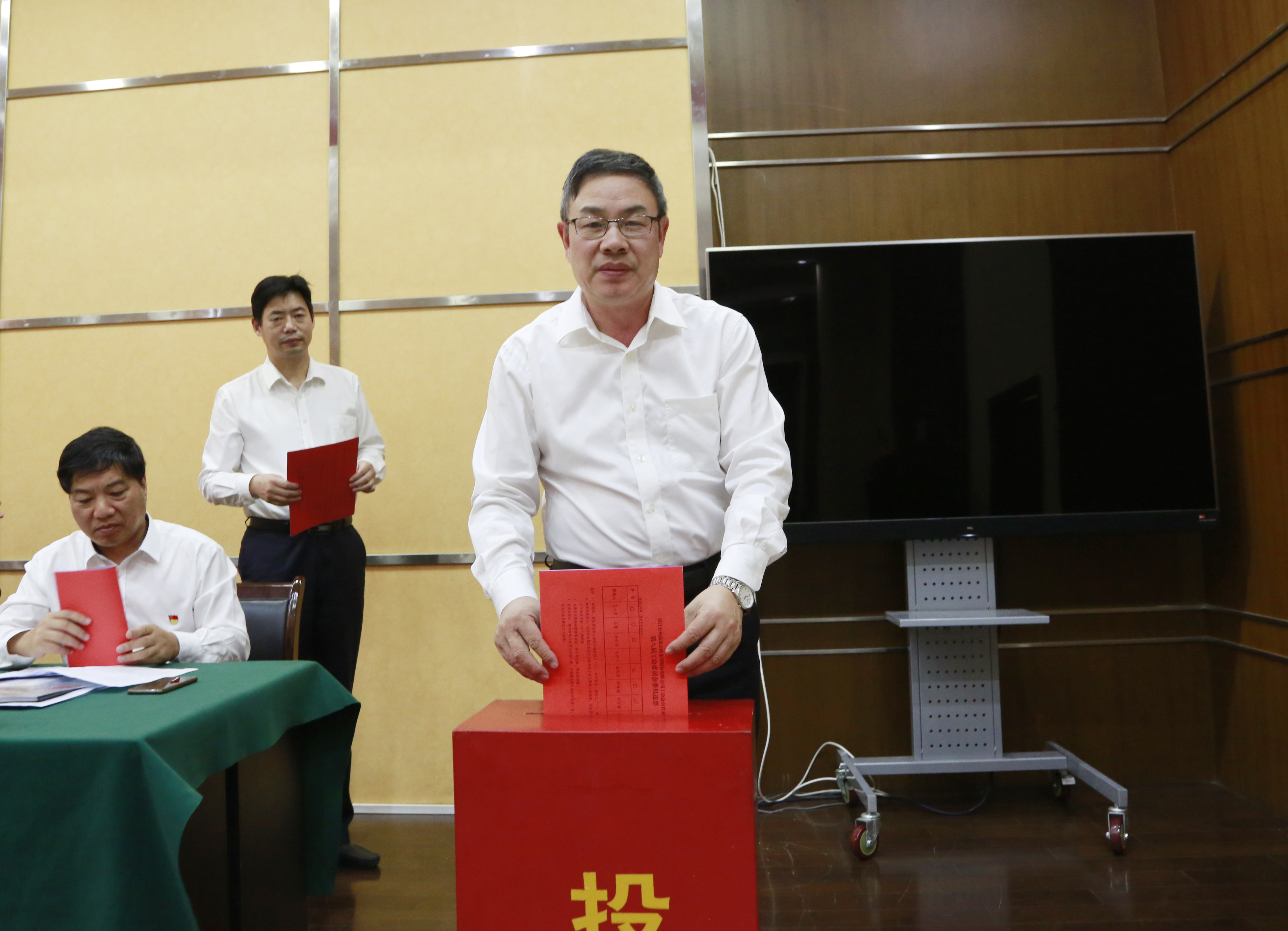 圖為集團副總經理陳保衛主持會議 會議聽取和審議了第七屆工會委員會工作報告及經費收支報告,選舉產生了第八屆工會委員會委員、經費審查委員會委員、勞動法律監督委員。項同富當選為新一屆工會主席、孫明偉為副主席,王慧為經費審查委員會主任,孫明偉為勞動法律監督委員會主任。