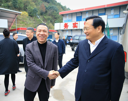 圖為市長張兵與公司總經理張建平在6#立交橋上親切握手
