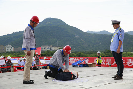 7月5日下午,根據(jù)“安全生產(chǎn)月”活動安排,內(nèi)環(huán)路(黃巖段)四個(gè)標(biāo)段的施工、監(jiān)理單位分別派出代表隊(duì),在內(nèi)環(huán)北路(黃巖段)第四標(biāo)段施工現(xiàn)場,依次開展消防、現(xiàn)場急救和意外窒息事故的應(yīng)急救援演練。